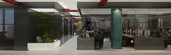 过渡玄关:网咖与酒店的缓冲带,设置门禁、智能前台、打卡灯墙