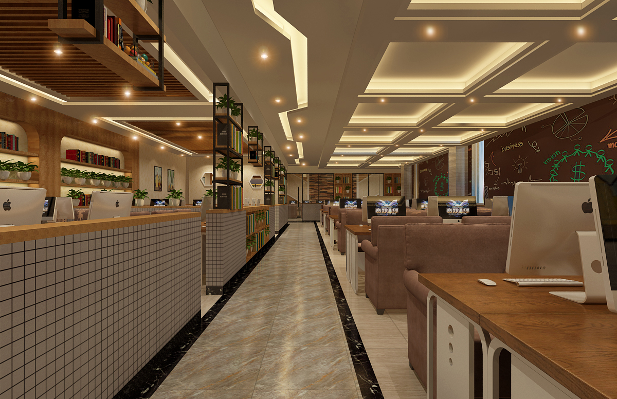 过道的装修效果切忌光线太暗或太明,再者如果走道比较宽,可以在装修好之后,考虑一定的修饰,避免太过于单调。网吧走道在装修网吧装饰方面虽不是最首要的问题,不装饰走道也没关系,但至少别在走道附近堆放杂物,以防影响到网友的走动。 网咖,网络咖啡厅的意思。从字面意义上来理解就不难,这绝是一个充满设计想法的空间室内设计。我们结合当地的经济情况,去为客户花最低的钱营造最好的氛围。体现的是一个文化,一个创意,一个想法。改变传统老百姓对网吧的憎恶,脏乱差,乌烟瘴气,给人一种排斥的感受。清新的空气,舒适的空间,多样化的服务,竞技比赛,上网学习,同学小聚的小资空间,这样的空间多花一元钱网费,绝大多数客户还是很乐意接受的。