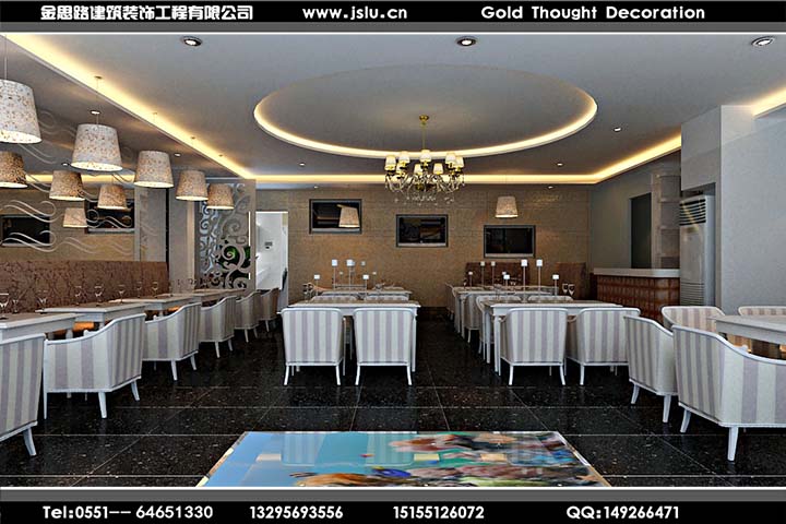 合肥餐厅装修设计中不单只强调灯光效果,同时色彩的配合也相当重要,因为同时利用灯光效果和色彩运用能传达“感觉讯息”。同时又要考虑节能效果。材质的耐久性成为餐饮设计中产品的生命周期的决定性因素。