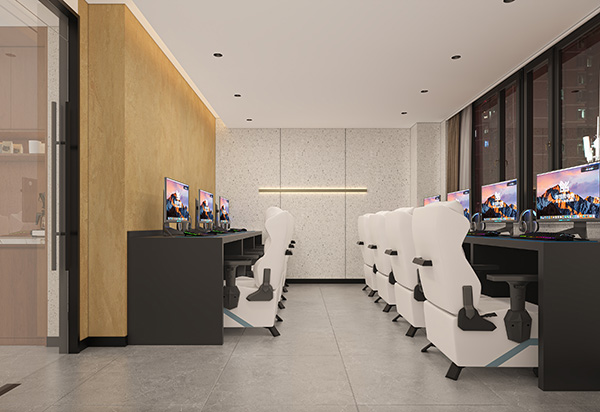 易清洁是日常运维的基础。 网吧高频的人流与饮食消费,要求地面必须具备抗污、防水、无缝隙的特性。高品质的通体瓷砖或同质透心PVC地胶是优选,污渍一擦即净,且不会渗透藏污,能大幅降低保洁成本,保持环境始终清爽。