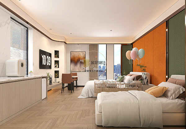 布局:双床 / 大床 + 婴儿床,紧凑高效。
