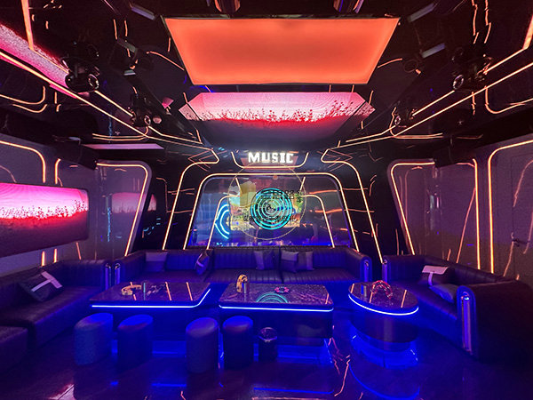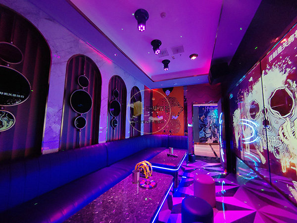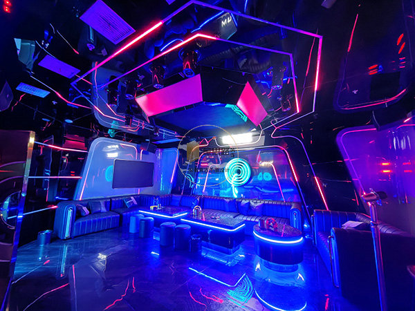 这是一套轻奢赛博风 + 主题化包厢的 KTV 工装实景,整体设计以「霓虹光影 + 几何线条 + 多元主题」为核心,打造沉浸式娱乐空间。