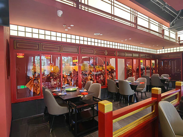 以 “红墙黛瓦,京韵新生” 为理念,用现代手法演绎传统京味:色彩上以朱红 + 炭黑 + 米灰为主色调,呼应老北京红墙与胡同灰瓦。材质上结合木质格栅、金属线条、磨砂玻璃,平衡传统厚重与现代轻盈。功能上兼顾私密包厢与开放散座,满足不同客群需求。